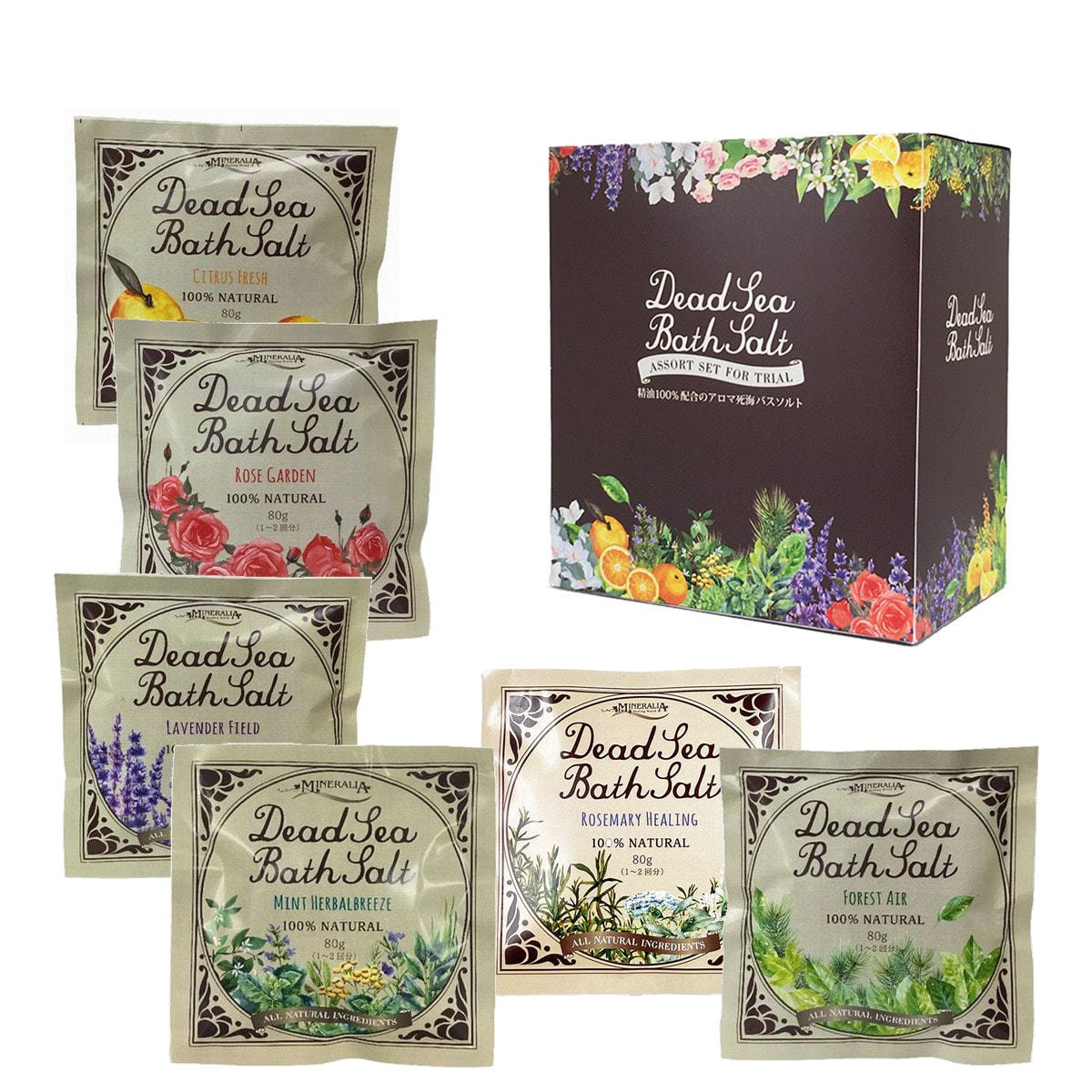 ミネラリア デッドシーバスソルト 80g 天然アロマアソートセット(6個入り)