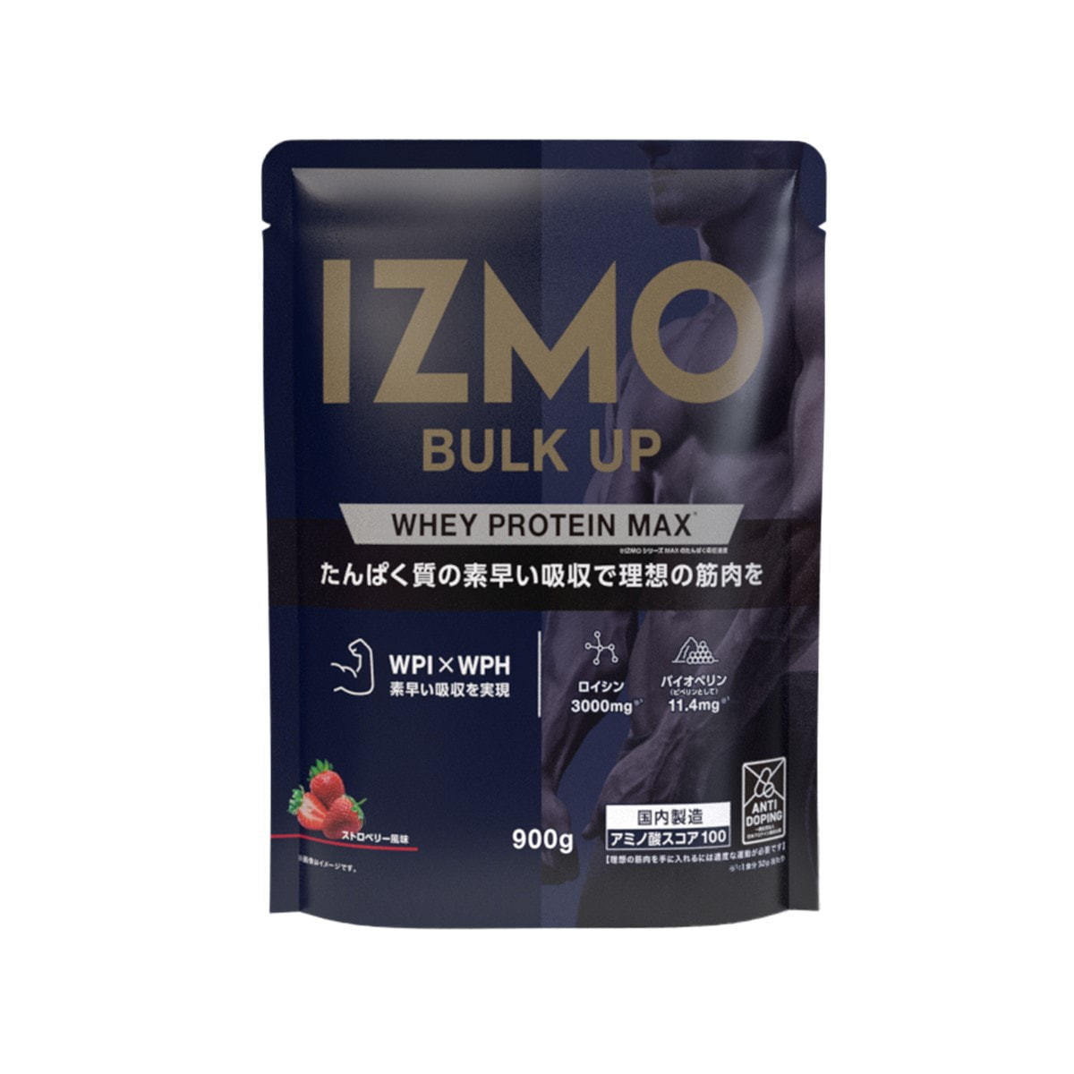 IZMO バルクアップ ホエイプロテイン マックス(ストロベリー風味)900g