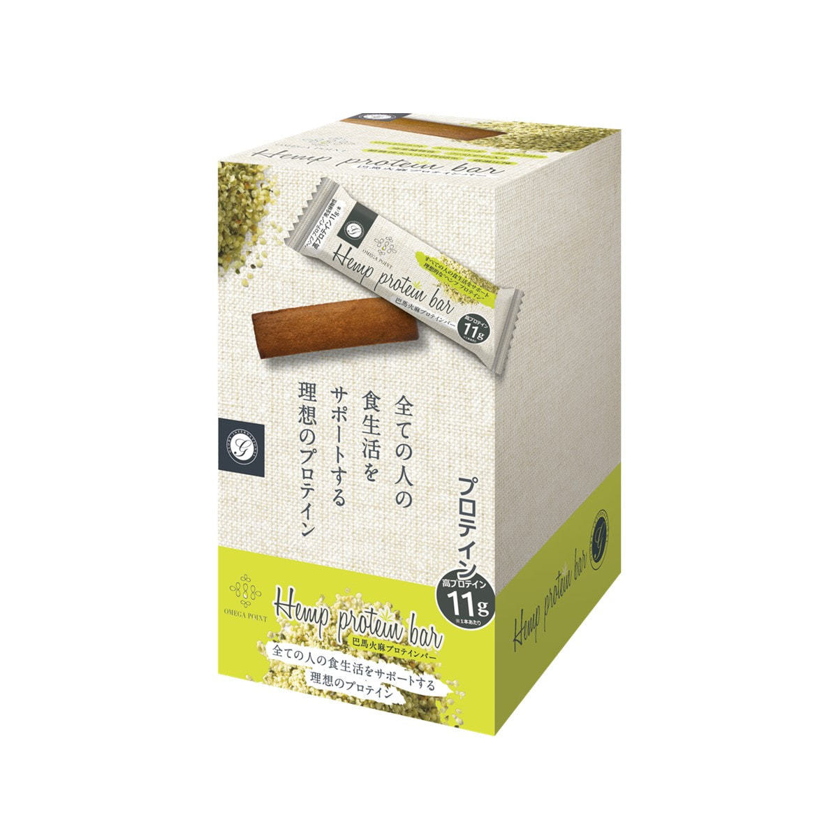 ヘンププロテイン、イソマルトオリゴ糖、火麻ナッツ、オリーブオイル、清涼飲料水(植物発酵エキス含有飲料)