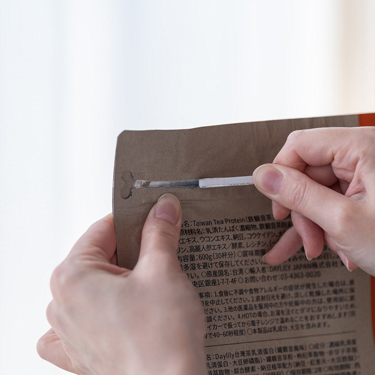 水または牛乳、豆乳などを200ccに、付属のスプーンで3杯分(約20g)を入れ(DAYLILYオリジナルメジャースプーンの場合も同様にスプーン3杯分)、よく混ぜるか、シェイカーで振ってお召し上がりください。